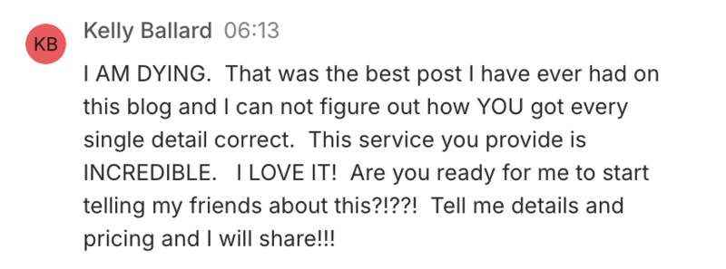 Once approved, we upload the post to your blog (Showit or WordPress), format it beautifully and all you need to do is hit publish (or even have us schedule it for you).