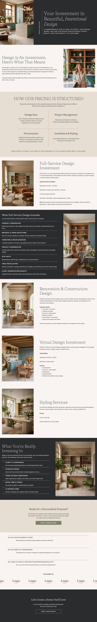 This pricing guide is fully set-up in Showit, so it's easy to manage and edit, and it can be sent through a link with no downloading necessary. Meaning your customers always have the latest pricing at their fingertips. You also have the option to make this public within your own website, or set it up as a plus-site so only enquiries can view it.